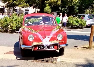Dauphine rouge 1960, couleur rare pour l'époque pour votre mariage
