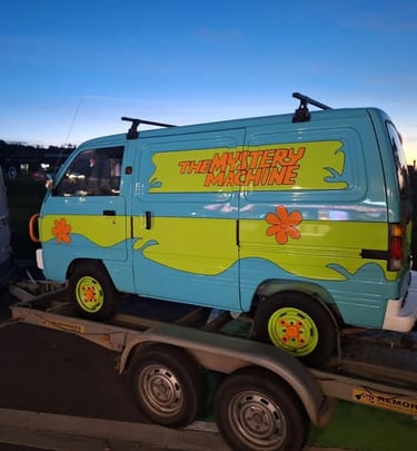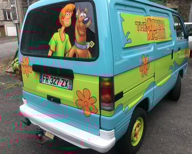 Mystery Machine, fidèle fourgon de Scooby-Doo pour vos soirées à thèmes ou anniversaires mais aussi vos conventions geek, enterrement de vie de jeune filles ou garçons, etc...