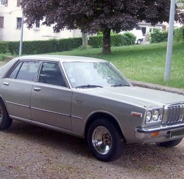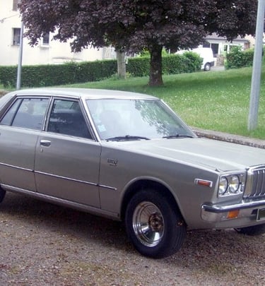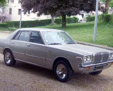 Datsun Laurel 1977, véhicule rare et atypique ( vehicule fabriqué de 1977 à 1981 seulement 57 modèles vendus sur toute l'Europe, aujourd'hui 2 modèles restant que l'on connaisse en France)