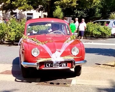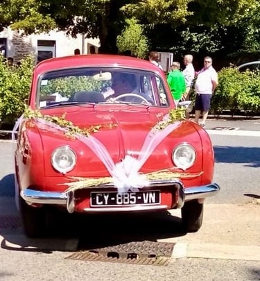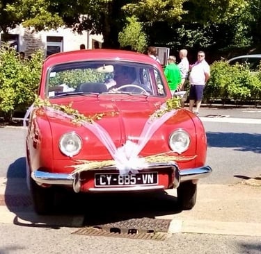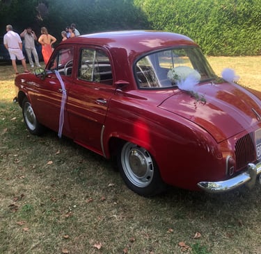 DAUPHINE RENAULT de couleur ROUGE assez rare pour l'époque, idéale pour un mariage